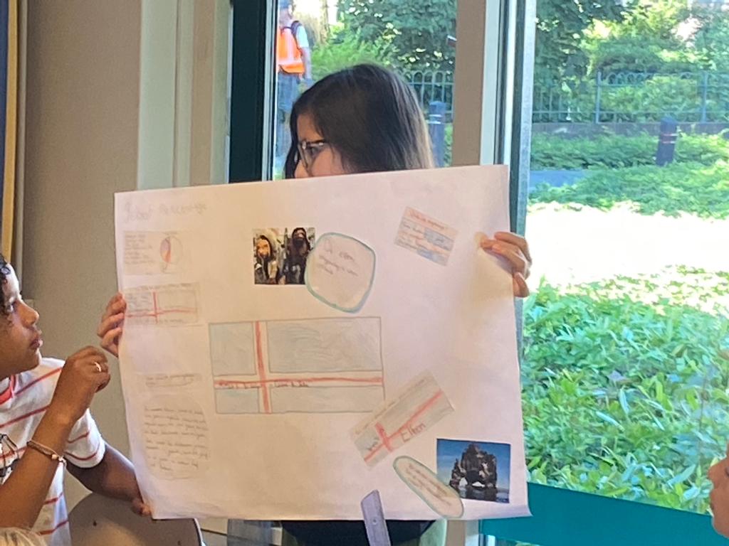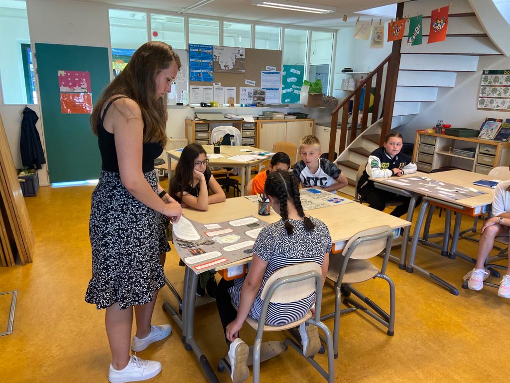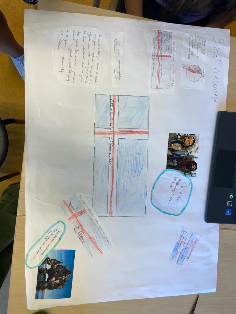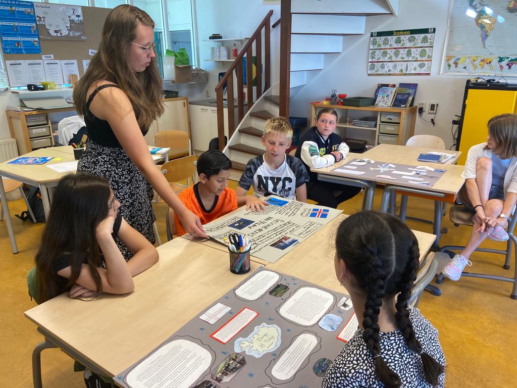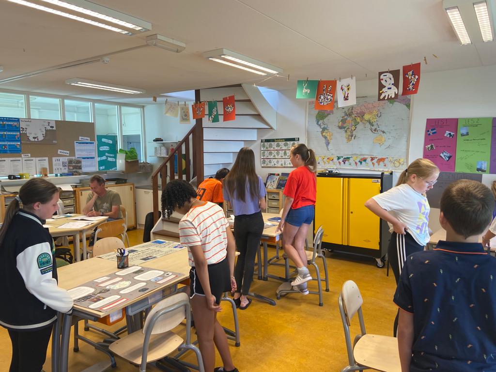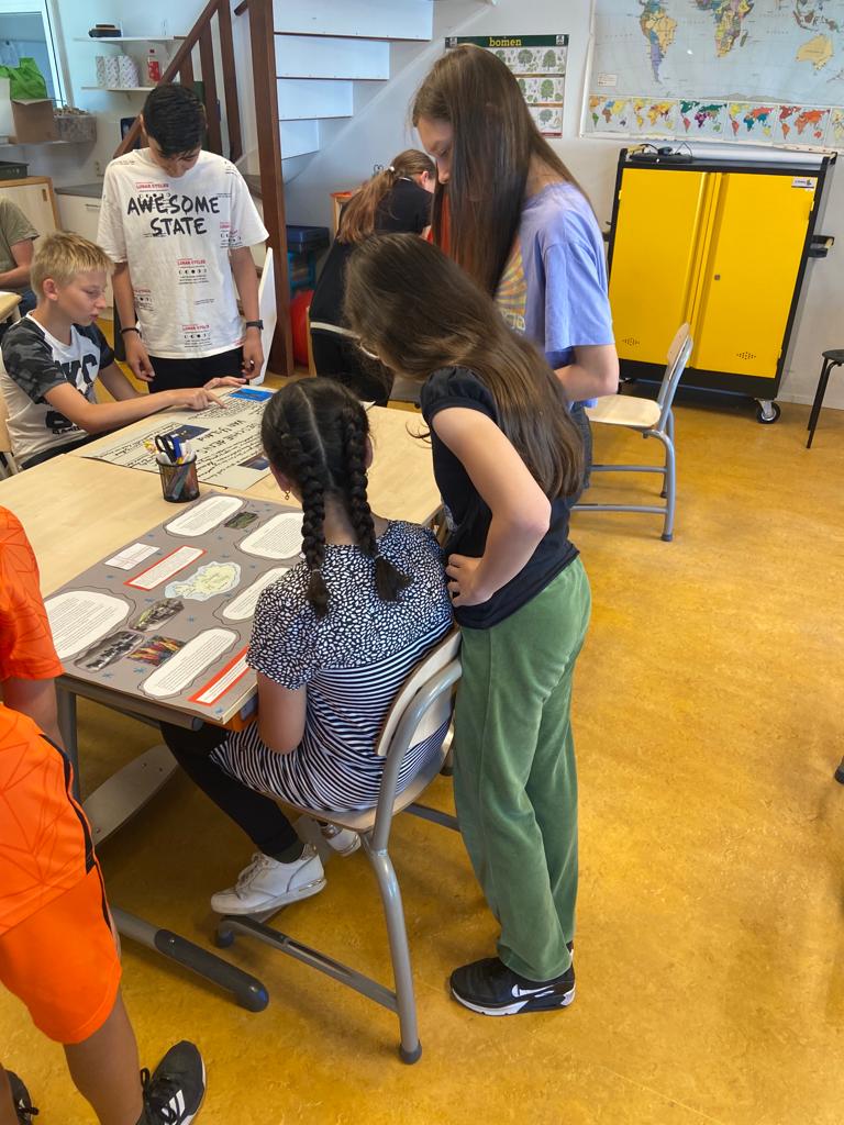 Vervolgens gaan alle groepjes bij elkaar kijken en krijgen ze een korte uitleg over de inhoud van de informatie op de posters.